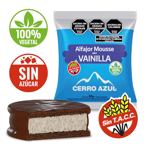Para los amantes de las delicias dulces, no podrán resistirse a nuestro alfajor de vainilla, relleno de suave mousse y cubierto con irresistible chocolate amargo. Es una experiencia de sabor inigualable para disfrutar después de comer, y lo mejor de todo, es completamente Sin T.A.C.C., Sin Azúcar y 100% vegetal, para deleitarse sin restricciones.